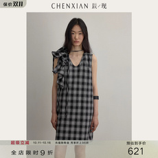 ASSIGNMENTS 2025秋季新款欧根纱连衣裙女士优雅荷叶边无袖背心裙