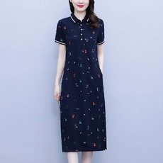 夏季款POLO领大码宽松女士t恤裙女中长款时尚休闲运动短袖连衣裙