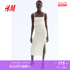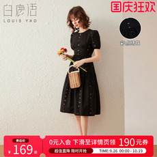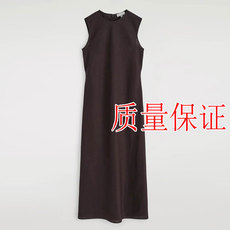 【商场同款】AUM噢姆夏季烫膜苎麻蛋型分割中长款黑色连衣裙长裙
