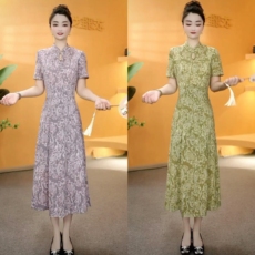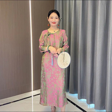 2025夏季新款褶皱中长款连衣裙年轻妈妈时尚气质显瘦温柔风魔术裙