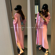 9折现韩国2025夏季新粉色oversize大码洋气中长款T恤式宽松连衣裙