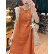 忆旧2025夏装新款 苎麻中长款文艺吊带裙简约打底裙无袖连衣裙女