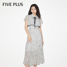 FIVE PLUS连衣裙女波点雪纺裙子中长百褶高腰复古2024新款女夏装