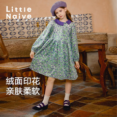 IVY HOUSE常春藤儿童装女童连衣裙秋款 法式春日斑斓碎花裙子印花