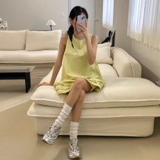 韩国chic夏季法式小心机后背镂空设计宽松抹胸式吊带连衣裙短裙女