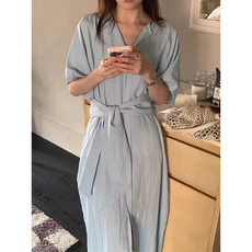 良良家慵懒风绑带收腰显瘦短袖连衣裙女夏季新款法式小众衬衫长裙