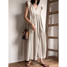 良良家松弛感毛边棉麻背心连衣裙女夏季新款简约气质宽松无袖长裙