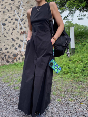 良良家复古简约侧开叉吊带连衣裙女夏季新款度假风宽松背心裙长裙