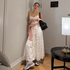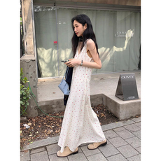 良良家法式度假风露背大摆吊带连衣裙女夏季新款小众慵懒风长裙子