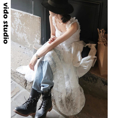 韩国INS风无袖吊带白色蕾丝连衣裙仙气法式小众网纱仙女长裙子夏