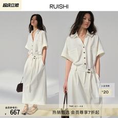 RUISHI芮时“柔权主义” 经典短袖系带显瘦通勤衬衫连衣裙女夏