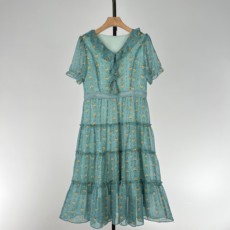 大码百分百2025春季新款女装贝壳扣小众仙女雪纺印花连衣裙