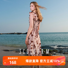 拉系列/S专柜断码 女夏中长薄透雪纺长袖连衣裙5A6261印花混色