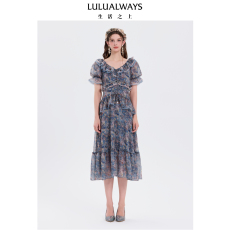 LULUALWAYS我爱露露25夏季新款法式温柔气质收腰显瘦雪纺连衣裙女