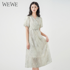 美妃2023新款春夏女装修身显瘦网纱V领插肩袖中长裙大摆a字连衣裙