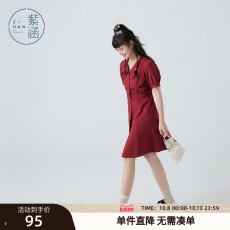 阁兰秀红绿撞色连衣裙夏艺术设计感修身气质减龄中长款A字裙女装
