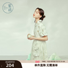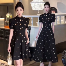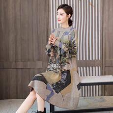 2023年时尚复古立领七分袖连衣裙女国风时尚改良中长款A字旗袍裙