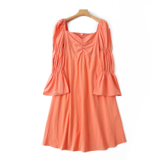 VANLU日本褶皱大师力作~复古肌理感 方领纯色A字中长款吊带连衣裙