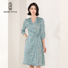 杭州重磅真丝连衣裙中长款碎花桑蚕丝收腰a字长裙女2025春夏新款