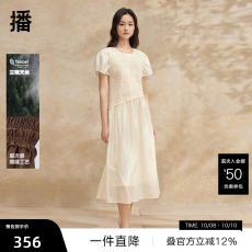 紫涵中长款法式连衣裙不对称领口A字裙夏季新款浪漫优雅纯色简约