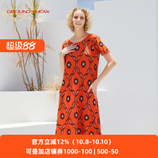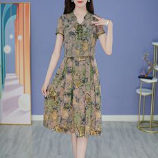 埃伦妈妈连衣裙夏季优雅女装中长款2025新款桑蚕丝短袖A字裙