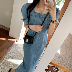 圆领长袖收腰连衣裙 春秋新款中长款百搭显瘦女A字外单裙子 24014