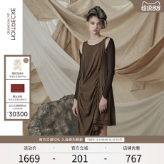 【到手399元】浪漫随性气质V领假两件系带宽松连衣裙中长款a字裙
