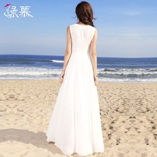 绿慕2025气质修身显瘦长款波西米亚连衣裙夏季女装大摆雪纺长裙仙