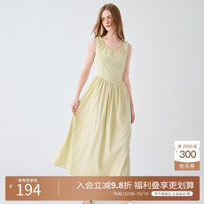 Basic House/百家好圆领纯色连衣裙2024夏季新款无袖大摆长裙女