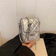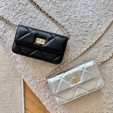小香风银色小方包女高级感手机包迷你小包软皮单肩斜挎菱格链条包