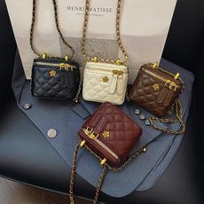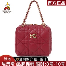 新款真皮山茶花轻便菱格链条包肩斜挎化妆包迷你盒子包时尚女包