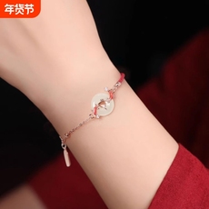 佳然玉饰2026本命年属马红绳编织绳和田玉纯银手链女送女朋友礼物