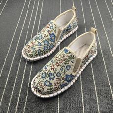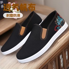 春秋老北京布鞋传统刺绣男鞋透气中国风一脚蹬软底防滑休闲工作鞋