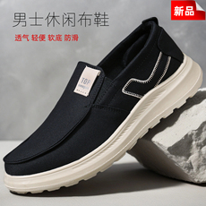 秋季男士休闲布鞋软底软面透气老北京爸爸鞋一脚蹬防滑懒人开车鞋