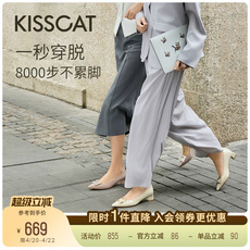 [陈数同款]接吻猫[银锭猫掌鞋]通勤裸色粗跟单鞋静音高跟鞋不累脚
