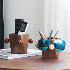 实木桌面遥控器收纳盒多功能客厅茶几整理盒北欧日式创意木制笔筒