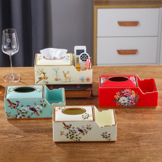 茶花纸巾盒客厅创意遥控器收纳盒茶几盒多功能纸抽盒纸巾筒抽纸盒