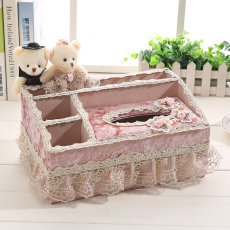 多功能收纳盒家用茶几纸巾盒桌面纸抽盒布艺花朵遥控器纸巾抽纸盒