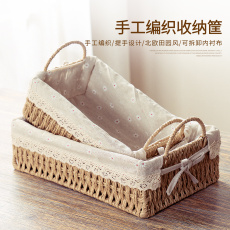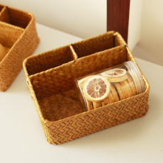 奇藤编收纳筐桌面收纳篮零食遥控器收纳盒内衣玩具收纳箱化妆品盒