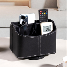 丽然皮办公桌面茶几遥控器收纳盒架 梳妆台护肤化妆品整理盒创意