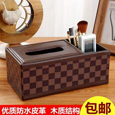皮革餐巾纸巾盒 多功能抽纸盒木质 欧式创意桌面遥控器收纳盒包邮