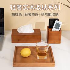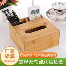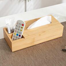 酒店纸巾盒多功能创意家居楠竹制作遥控器纸巾收纳盒可定logo包邮