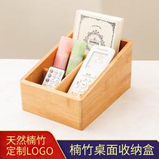 楠竹遥控器收纳盒创意木质办公桌面整理储物箱文具收纳可logo包邮