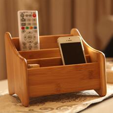 包邮楠竹遥控器收纳盒创意木质办公桌面整理储物箱客厅茶几收纳架