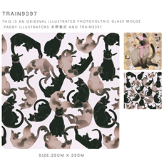 9397猫咪系列自创原创插画光伏玻璃鼠标垫25x25cm游戏电竞用