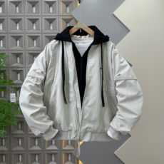 冬季夹棉假两件外套男士潮流痞帅拼接连帽加厚外套百搭休闲上衣潮