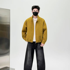 新款极简廓形立领颗粒毛呢棉服外套男士冬季新款宽松痞帅青年棉衣