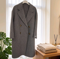 100%绵羊毛,亲肤柔软高级灰色中长款双面羊绒大衣外套,清仓处理
