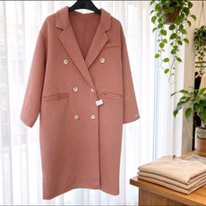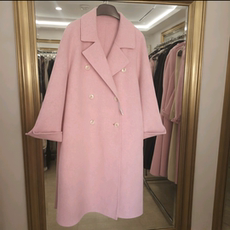 100%羊毛,粉色六粒双排扣中长款韩版双面羊毛大衣外套,清仓处理