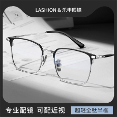 乐申专业网上配商务半框近视眼镜框男士可配带度数超轻纯钛眼睛架